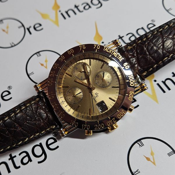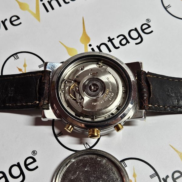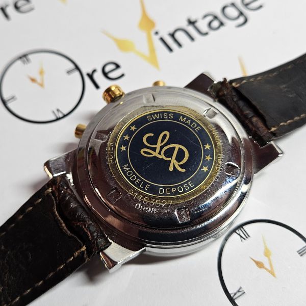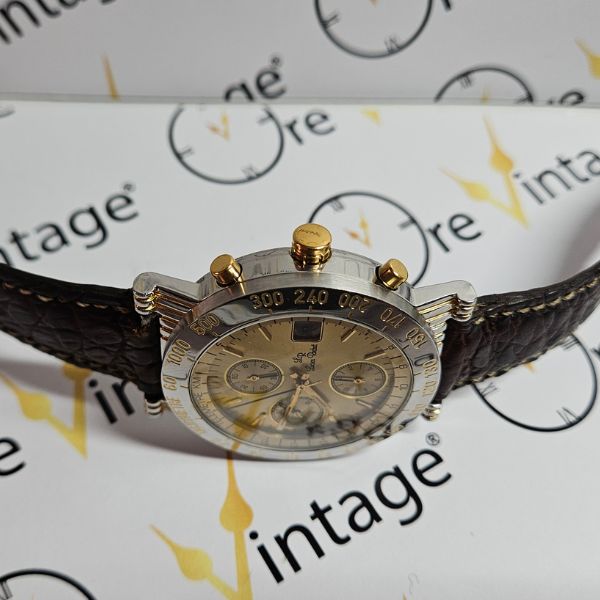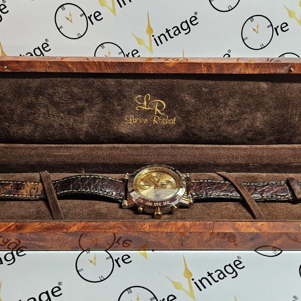 fantastico cronografo di casa Lucien Rochat con la cassa in acciaio da 39 mm escluso corona , lug to lug di 45 mm , lo spessore è di 13 mm  e la distanza tra le anse é di 19 mm . il vetro é zaffiro , la corona originale é a pressione  e il fondello é a vite , la ghiera é fissa . il movimento che anima questo orologio è a carica automatica , calibro ETA 2892-2 piú il modulo cronografico debois depraz . fibbia originale e scatola bellissima