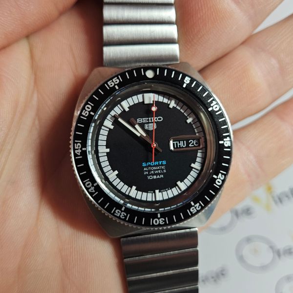 ricercato orologio di casa Seiko con la cassa in acciaio da 39 mm escluso corona , lug to lug di 43 mm , lo spessore è di 12.5 mm e la distanza tra le anse é di 20 mm . il vetro é hardlex , la corona é a pressione e il fondello é a vite , la ghiera é girevole bidirezionale . il movimento che anima questo orologio è a carica automatica , calibro Seiko 4R36 . compreso del suo bracciale originale , scatola e garanzia timbrata gennaio 2024 .