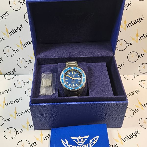 bellissimo orologio di casa Squale con la cassa in acciaio satinata di diametro 42 mm escluso corona , lug t lug di 48 mm lo spessore è di 12,5 mm e la distanza tra le anse è di 20 mm. il vetro è zaffiro , la corona e il fondello sono serrati a vite , la ghiera è girevole unidirezionale . il movimento che anima questo orologio è a carica automatica cal. Sellita SW200 . orologio completo di scatola .
