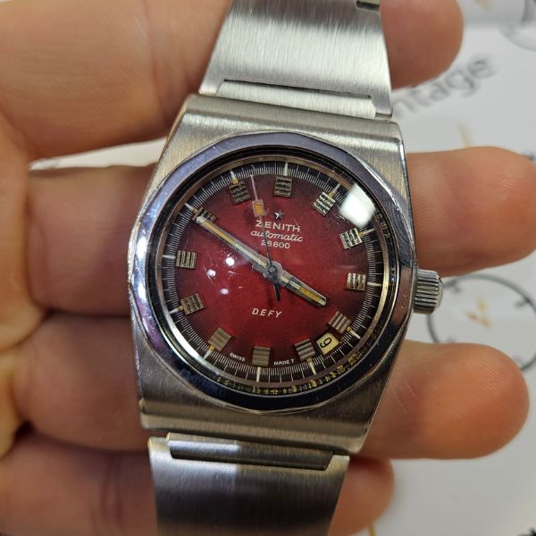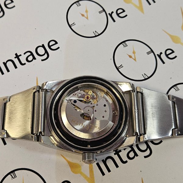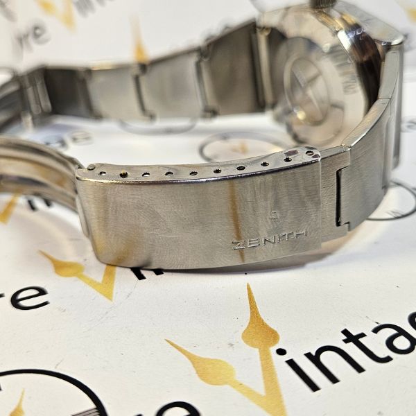 Bellissimo orologio di casa Zenith con cassa in acciaio 38 mm , lug to lug di 45 mm , lo spessore è di 13 mm e la distanza tra le anse è di 22 mm . il vetro è minerale , la corona originale e il fondello sono a vite, il movimento che anima questo orologio è a carica automatica calibro zenith 2562PC . " il bracciale è originale , ma la parte dello snodo è generica come da foto .